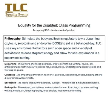 We serve all individuals, families and nonprofits surrounding special-needs children and adults who are searching for extraordinary opportunities to grow and develop, within an overall positive and healthy community setting and environment. TLC promotes learning and proper development by providing leadership through cutting edge solutions to #1 causes affecting all Americans at some point in this lifetime.